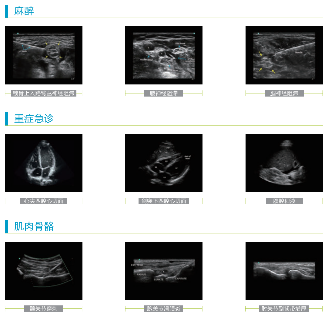 麻醉科、重癥科、急診科、超聲科、CVC、PICC、 泌尿科、肌肉骨骼、 心臟科、婦產科、外科、兒科、神經科等各POC 臨床領域